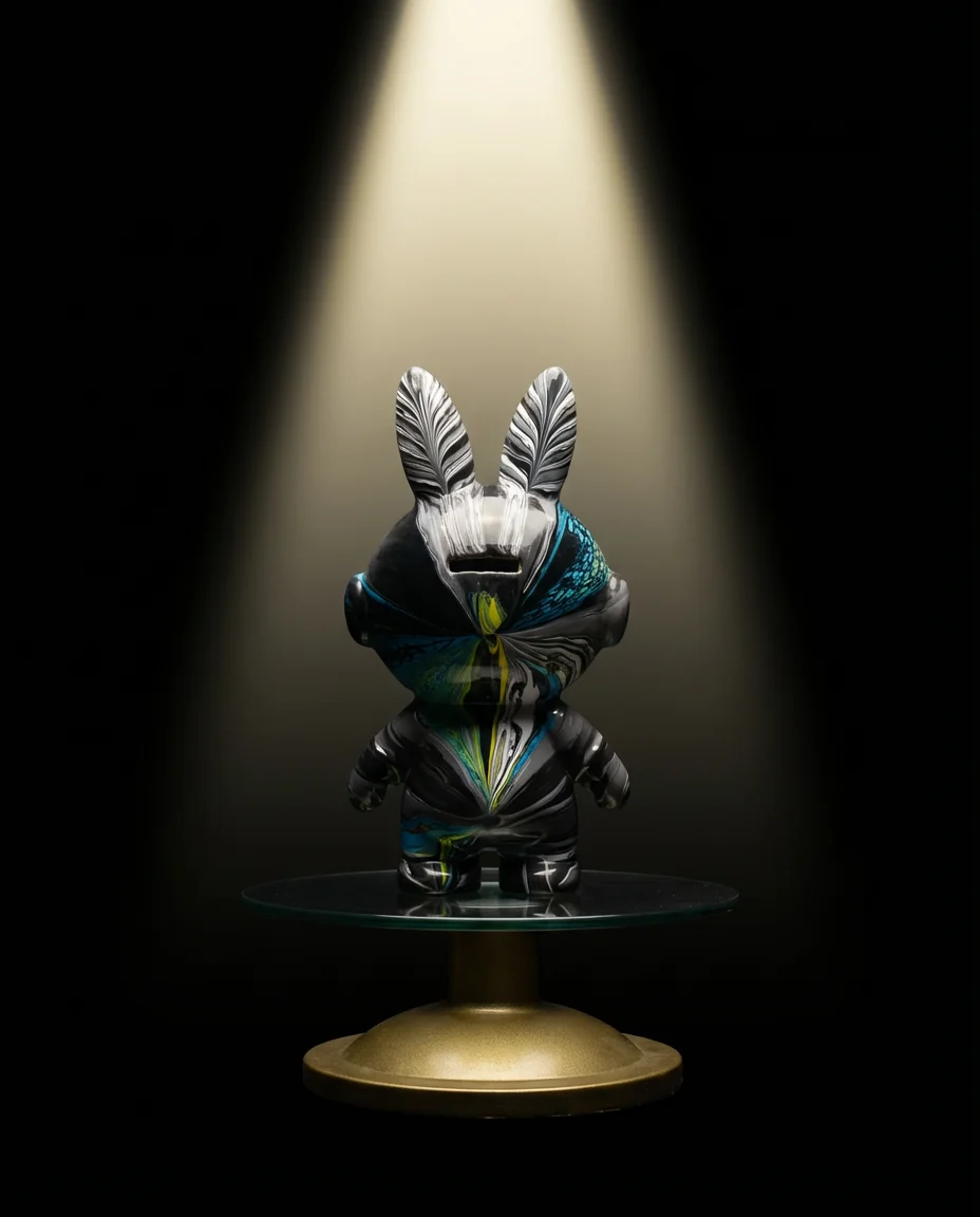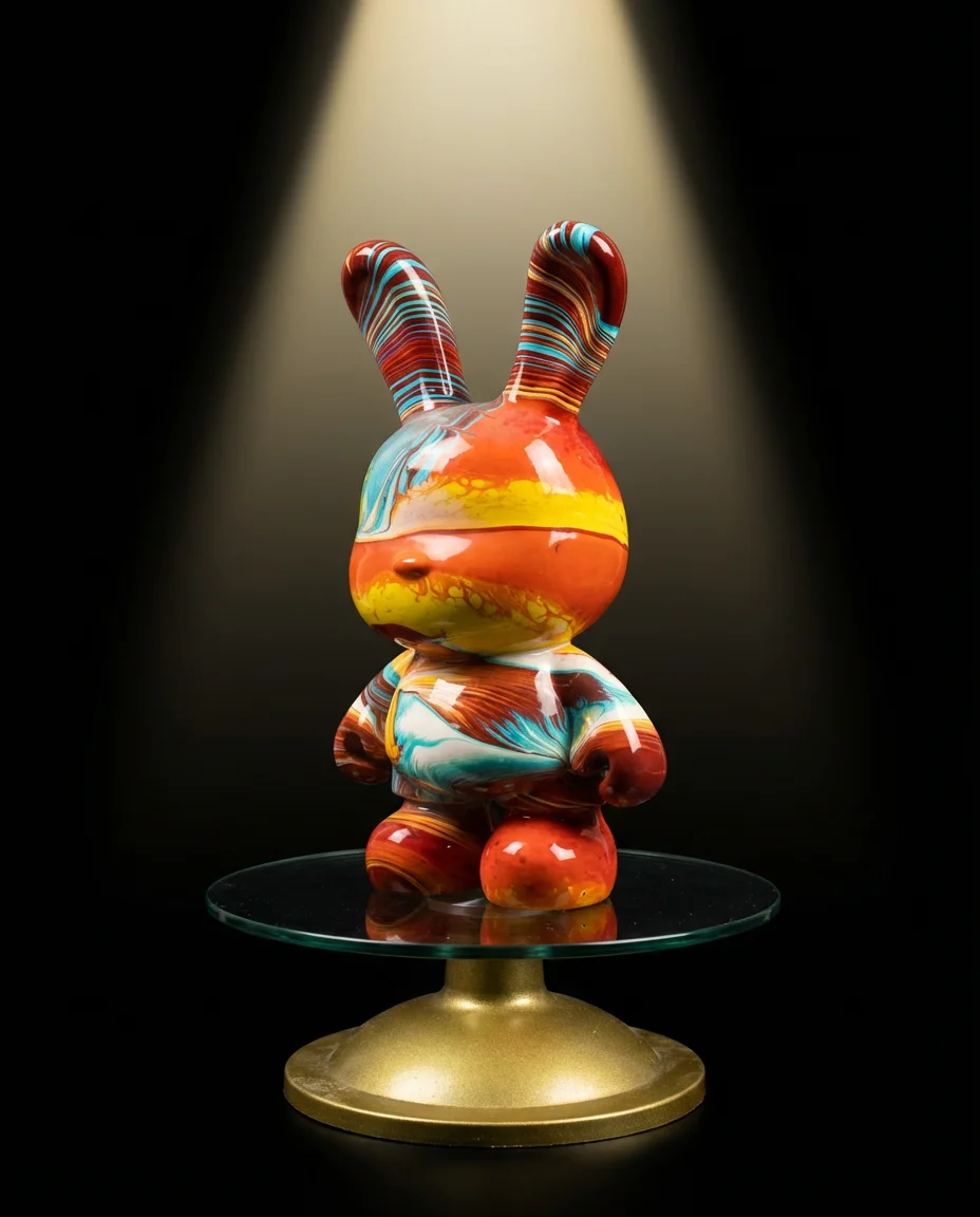 A breathtaking collision of deep-sea blue and crackle-glaze teal. This large-eared Dunny figure captures the raw energy of the ocean floor, where pressure creates beauty. Every crack in the surface is unique — formed by the fluid art process, never to be replicated. Perfect for collectors who appreciate the intersection of street art and fine craft.\n\nEach piece is hand-painted by our artist. No two are ever the same.