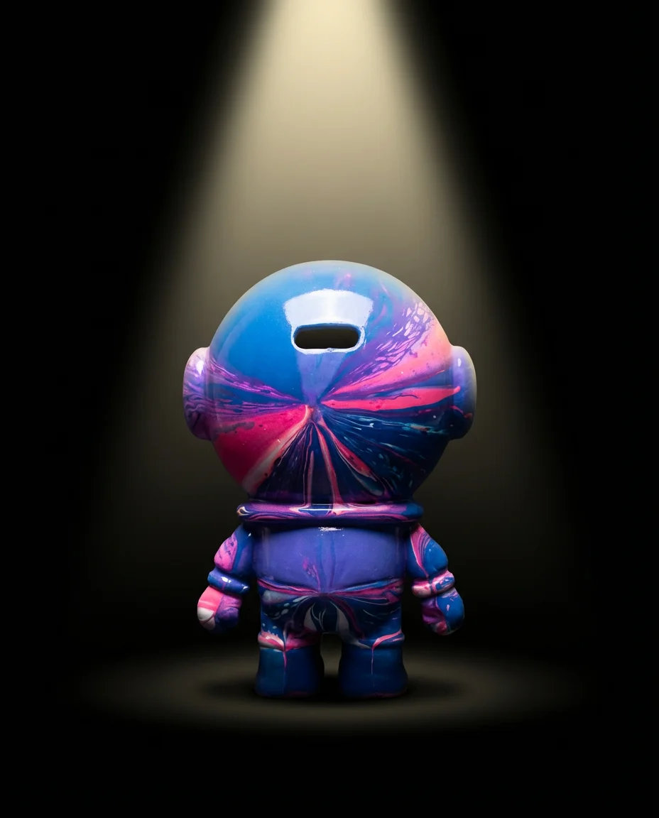 Rainbow paint rivers cascade down this Dunny rabbit figure — red, orange, yellow, teal flowing together like a solar flare frozen in time. The most vibrant piece in our debut collection, and the hardest to walk away from.\n\nEach piece is hand-painted by our artist. No two are ever the same.